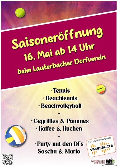 Gegen Abend wollen wir zum Feiern übergehen, wenn die DJs Sascha und Mario - bekannt vom Event WASENBEATS - die Regler übernehmen. Bei guter Musik und bester Stimmung lassen wir den Tag gemeinsam ausklingen und feiern den Beginn eines Sommers voller sportlicher und geselliger Highlights beim Lauterbacher Dorfverein.