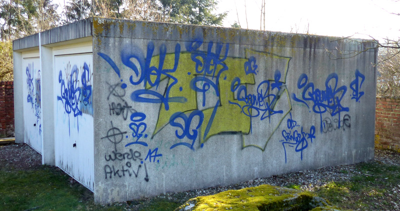 Um die Haftung des neuen Graffitis und einen durchgehenden Untergrund zu schaffen haben Ortwin Kronser und Rudi Blechschmidt zunächst sowohl die Wände als auch die Tore gründlich mit dem Hochdruckreiniger gereinigt, dann Primer und Grundierung aufgetragen. So entstand in über 40 Arbeitsstunden eine frische “Leinwand” für das Bild, das dann vom Künstler und einem Kollegen gestaltet wurde. Gegen zukünftige Verschmutzung durch Algenbewuchs etc. schützt ein neu angebrachtes Dachblech sowie ein doppelter Schutzanstrich, den Rudi Blechschmidt noch darüber aufgetragen hat.